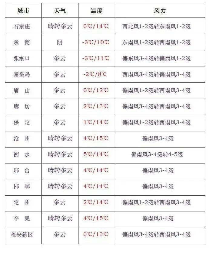 今天白日,承德东北部阴有零散小雪,其他地域晴转多云。北部、承德北部最高气温3℃至8℃,其他地域9℃至16℃。北部、承德北部和东部有偏南风4级到5级,阵风6级到7级,局地可达8级。今天夜间到明天,、及以南地域多云转阴有细雨,、承德阴,其他地域多云转阴有细雨转雨夹雪或小雪,局地有中雪。明天夜间到27日,、承德西部阴有小雪或零散小雪转多云,西部、西部阴有雨夹雪或细雨转多云,其他地域多云。